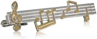 Krawattenklammer LINDENMANN, Notenblatt, krawattenschonende hochwertige Alligator-Mechanik, Rhodium veredelt (bicolor), im schwarzen Geschenketui