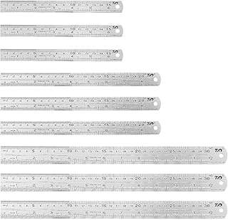 Wandefol Edelstahl Lineal, Edelstahl-Lineal Metall Stahlmaßstab Gerade Kit Umrechnung Tabelle Messwerkzeug Büromaterial 15cm 20cm 30cm 9 Pcs Lineal