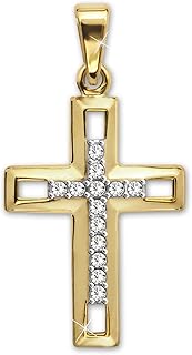 Goldener Damen Anhänger Kreuz 20 mm innen offen und der Mitte mit vielen Zirkonias 333 GOLD 8 KARAT