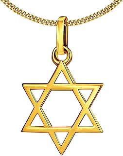 Set Goldener Anhänger Davidstern 12 mm glänzend 333 GOLD 8 KARAT mit vergoldeter Kette Panzer 45 cm
