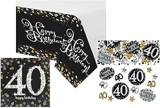Feste Feiern Tischdekoration 40. Geburtstag | 18 Teile Deko-Set Tischdecke Servietten Konfetti Gold Schwarz Silber Party Set Happy Birthday 40