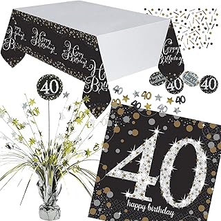 Neu: 46-TLG. Tischdeko-Set * Sparkling Celebration * für den 40. Geburtstag | mit Centerpiece + Tischdecke + Konfetti + Servietten | Deko Set Party vierzig
