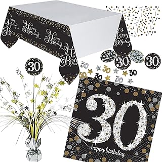 Neu: 46-tlg. Tischdeko-Set * Sparkling Celebration * für Den 30. Geburtstag | mit Centerpiece + Tischdecke + Konfetti + Servietten | Deko Set Party Dreißig