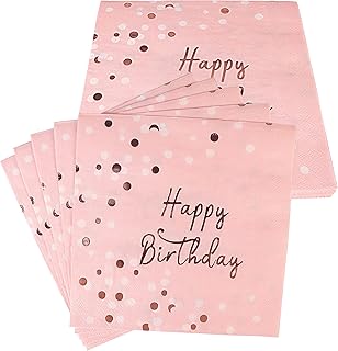 Servietten Geburtstag, 16 Stück Happy Birthday Servietten Rosa für Party, Hochwertige Tischdeko Papierservietten für Mädchen Geburtstag Party Deko(Rosegold )