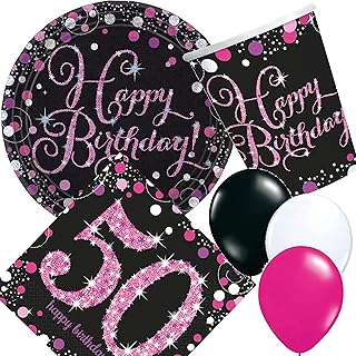 Carpeta 33-teiliges Partyset * PINK Sparkling Celebration * für den 50. Geburtstag // mit Teller + Becher + Servietten Luftballons // Deko Set Party Mottoparty Motto fünfzig Magenta