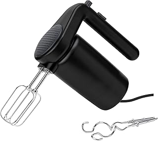 RIG-TIG Handmixer FOODIE - Elektrischer Schneebesen, 3-stufiger Handrührer zum Backen, für Teig & Schlagsahne - Aus Kunststoff & rostfreiem Edelstahl - Kabelfach, ergonomischer Handgriff - Schwarz