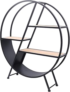 Vintage Runde Regal Diameter 90cm Metall Eisen und Holz, Bücherregal Lagerregal Speicherplatine Anzeige Regal für Bar Wohnzimmer Schlafzimmer