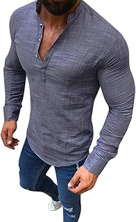 Ncenglings Herren Hemd V-Ausschnitt Hemden Mode Halb offen Blusen Einfarbig Leinenhmed Elegant Button Up Shirts Freizeit Business Hochzeit T-Shirt Männer Langarmshirts Pailletten Tops Business Hemd