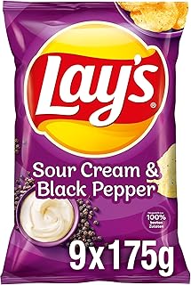 Lay's Sour Cream & Black Pepper - Knusprig gewürzte Kartoffelchips für eine gelungene Party - 9 x 175g
