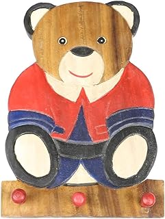 Oriental Galerie Kindergarderobe Garderobenleiste Hakenleiste Holzgarderobe Kindermöbel Bär 3 Haken Holzfarben Natur Limboholz Holz