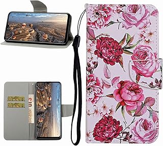 Miagon Hülle für Samsung Galaxy A50,Handyhülle PU Leder Brieftasche Schutz Flip Case Wallet Cover Klapphüllen Tasche Etui mit Kartenfächern Stand,Rot Blume