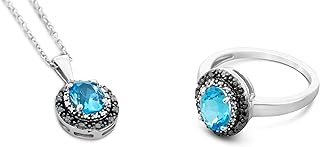 Damen-Schmuckset Halskette und Ring 925 Sterling Silber Topas Blau mit Brillanten Gr. 54 (17.2)