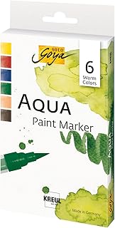 Kreul 18185 - Solo Goya Aqua Paint Marker Warm Colors, 6er Set in kadmiumgelb, zinnoberrot dunkel, indigoblau, olivgrün, roter ocker und havannabraun, Künstlerstifte mit elastischer Pinselspitze