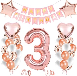Bluelves Luftballon 3. Geburtstag Rosegold, Geburtstagsdeko Mädchen 3 Jahr, Happy Birthday Folienballon, Deko 3 Geburtstag Mädchen, Riesen Folienballon Zahl 3, Ballon 3 Deko zum Geburtstag