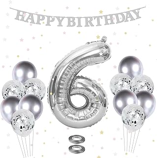 onehous Luftballon Geburtstag 6 Jahr, Silber- 6. Geburtstag Dekoration, Deko 6. Geburtstag, Geburtstagsdeko 6 Jahr Junge, Riesen Folienballon Zahl 6 für Junge Mädchen