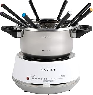 Progress EK4375PVDEEU7 Elektrischer Schweizer Fondue-Set, Schokoladenfondue/Käsefondue mit 8 Gabeln und Eurostecker, 1,4 l, 1200 W, für Käse, Fleisch, Schokolade, Brühe & Mehr