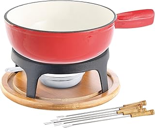 BBQ-Toro Gusseisen Fondue Set für 6 Personen | 2 Liter | Fondueset 9 teilig mit Brenner und Gabeln | Fondue-Set, Käsefondue Set, Fleischfondue Set, Schokofondue Set (rot/creme emailliert)