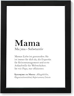 Definition: Mama | A4 | Kunstdruck mit schwarzem Echtholz-Bilderrahmen | Bild mit Wort-Erklärung Substantiv im Duden | Geburtstagsgeschenk Geschenk-Idee Mutter Geschenk Muttertagsgeschenk