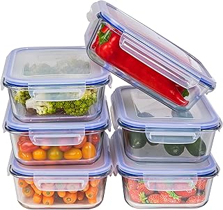 6er Set Glas Frischhaltedosen Glasbehälter Vorratsdosen 1000ml auslaufsicher luftdicht stapelbar mit Deckel Mikrowellen und Gefrierschrank geeignet