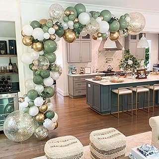 NeuWee Luftballons Grün Ballon Girlande, 119 Stück Luftballon Girlande Gold Konfetti Ballons Ballonbogen Kit Klebepunkte und Lochband für Geburtstagsdeko Babyparty Hochzeit Baby Shower Party Deko