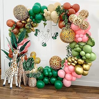 Luftballon Girlande Dschungel Luftballons Geburtstag,Ballongirlande Set Geburtstagsdeko Mädchen Safari Animal-Print Luftballons Olivgrün Rosa Gold Ballon für Hochzeit Baby Shower Taufe Deko