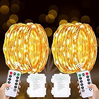 Lichterkette Batterie, 8 Modi und Timer,Wasserdichte IP65 Innen Außenlichterkette Kupferdraht für Balkon, Zimmer, Party, Hochzeit, Weihnachten,Halloween (2 Stück-120LED, Warmweiß)