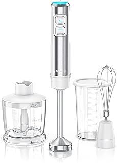 Stabmixer, Hanmulee 5-in-1 Pürierstab Edelstahl Set, 600W Stabmixer mit 12 Geschwindigkeiten & Turbotaste, Milchaufschäumer, Schneebesen, 600ml Messbecher & 500ml Zerkleinerer