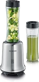 SEVERIN Smoothie Mix & Go, 600 ml, ca. 300 W, Inkl. 2 Trinkbehälter mit Deckel, SM 3739, Edelstahl/Schwarz