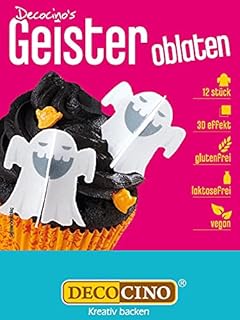 Decocino Halloween Oblaten Geister mit 3D-Effekt (12Stk.) – Torten-Deko | Kuchen-Deko | Muffin-Deko | Cupcake-Deko – Halloween-Deko aus Esspapier