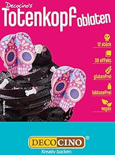 Decocino Halloween Oblaten Totenköpfe mit 3D-Effekt (12Stk.) Torten-Deko Kuchen-Deko Muffin-Deko Cupcake-Deko Halloween-Deko aus Esspapier