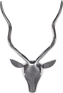 FineBuy Deko Hirschgeweih S Aluminium Wanddeko Landhausstil Silber Metall modern | Design Hirschkopf Landhaus Geweih Wand groß | Wohndeko Hirsch außen | Wandschmuck